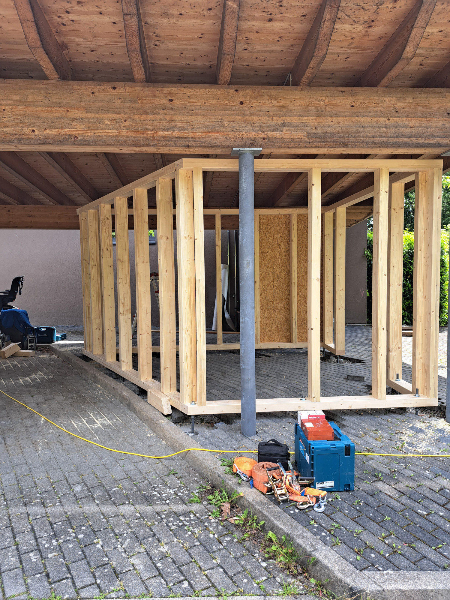 Fabrication et pose d’un abri vélo et ses rangements intérieurs